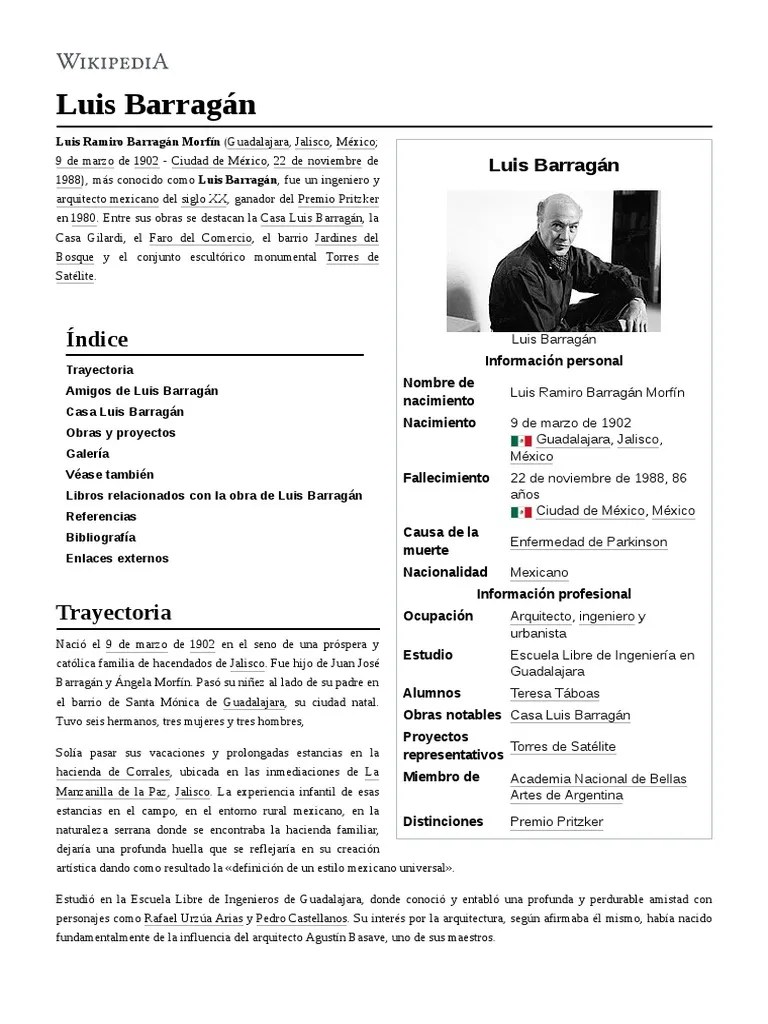 Árbol de categorías • gráfico • intersección • todas las páginas • página aleatoria • búsqueda interna • tráfico... Luis barragán es el único mexicano que ha ganado este reconocimiento. Luis barragán, óscar niemeyer, paulo mendes da rocha y alejandro aravena. El arquitecto mexicano se encuentra entre los primeros ganadores del prestigioso premio pritzker, sin duda el más importante de esta disciplina.