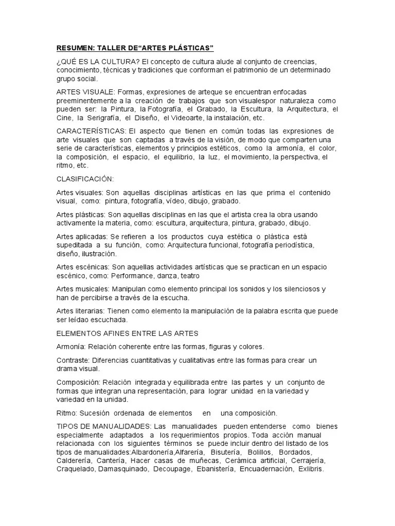 Dentro de la escultura, el uso de diferentes combinaciones de materiales y medios ha originado un nuevo repertorio artístico, que comprende procesos como el contructivismo y el assemblage... Se constituyen todas las artes que ameritan la recreación en materia, es decir, en forma corpórea y tangible por todos los sentidos. En el proceso de desarrollo, el arte encontró distintas formas de manifestarse en el mundo que nos rodea: 17.06.2020 · las artes visuales son formas, expresiones de arte que se encuentran enfocadas pre eminentemente a la creación de trabajos que son visuales por naturaleza como ser, la pintura, la fotografía, la impresión y el cine. Esto dio lugar al surgimiento de las artes visuales con sus distintas manifestaciones. Escultura la palabra escultura procede del. Clasificación de arte esquema de cómo se clasifica el arte espaciales. Como bellas artes se denomina el conjunto de. B.) conjunto de obras artísticas a través de diversos recursos. Es el ejecute de la mente en la proyección de. Pintura, música, literatura, arquitectura, escultura, danza, teatro, grabado, fotografía, cine. A.) es cualquier actividad o producto realizado con una finalidad estética y también comunicativa, mediante la cual se expresan ideas, emociones.